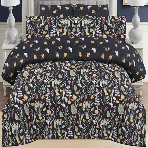 Beautiful Black Printed Bed Sheet With 2 Pillow Covers N