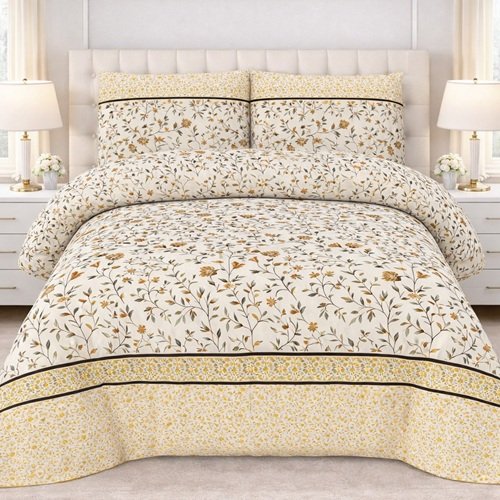 Cream Color Printed Bed Sheet B