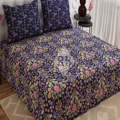 Dark Blue Color Printed Bed Sheet S