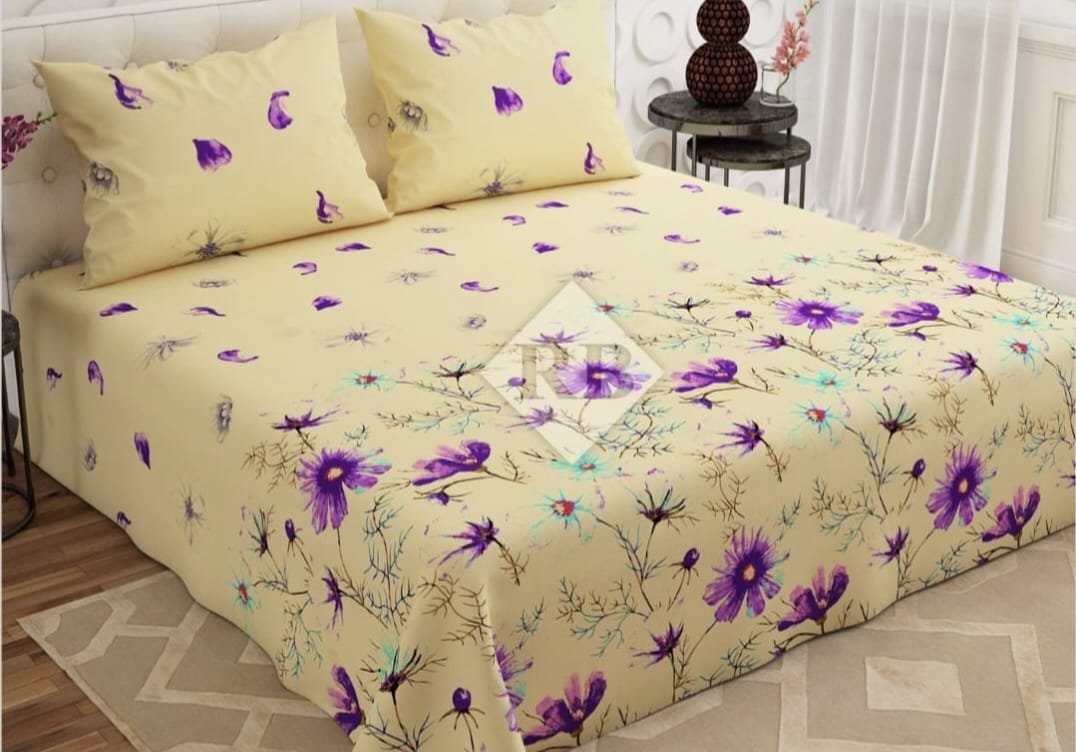 Light Yelloow Color Printed Bed Sheet B