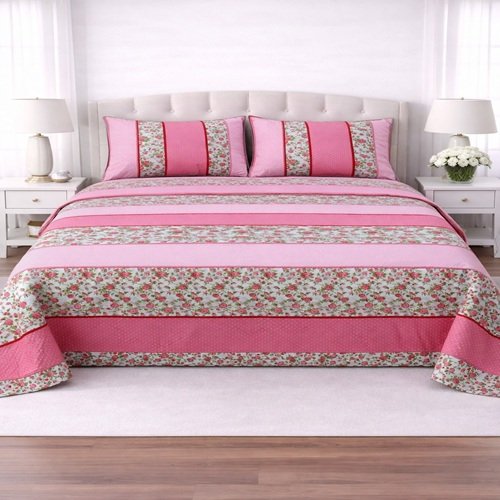 Pink Printed Sheet With 2 Pillow Covers – 3 PCS