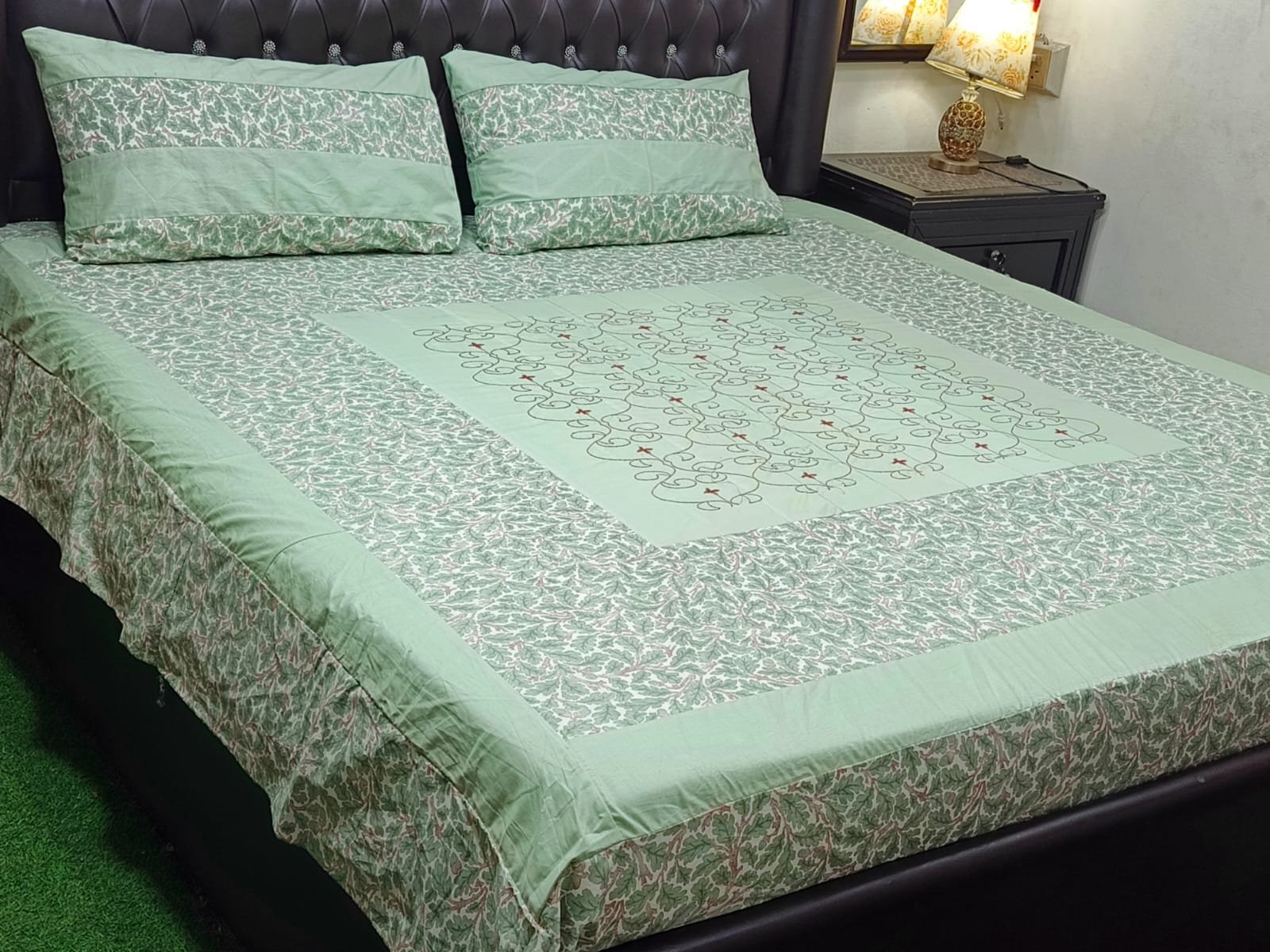 Printed Patchwork Embroidered Bed Sheet GN Design (26)