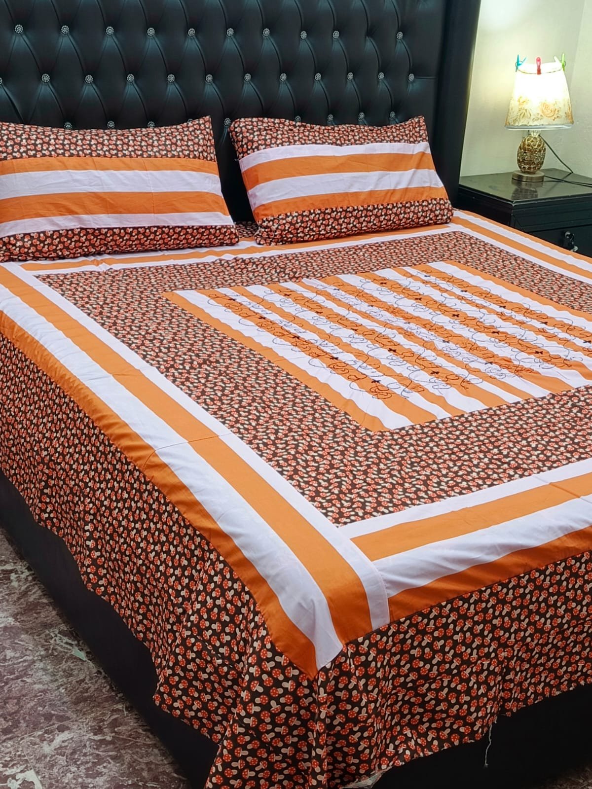 Printed Patchwork Embroidered Bed Sheet GN Design (58)