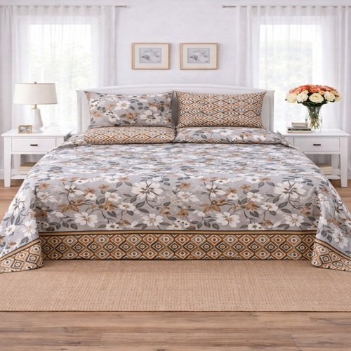 Whit Brown Grey Color Printed Bed Sheet B